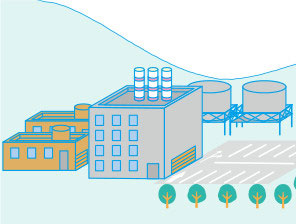 湖沼や河川から取水された「原水」は、浄水場で浄水処理を受け、きれいな生活用水に変化していきます。その過程では、必要に応じて水量や水圧を調整するために当社の配電盤も活躍しています。