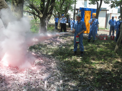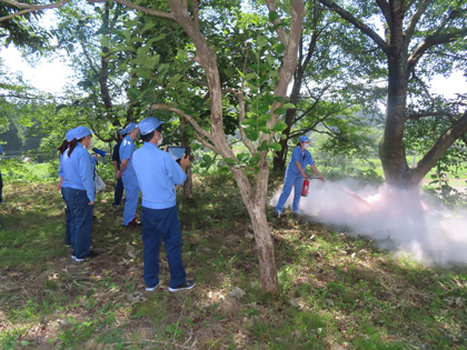 また今年は消火器の使用方法について実物を使い