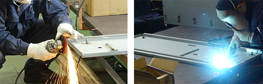 ご依頼から納品までの流れ ご依頼 お電話、もしくはお問い合わせページより、当社へお気軽にご連絡ください。 仕様打ち合わせ 設計 板金設計 板金加工 塗装 組立・配線 検査 出荷 お客様の立会い検査完了後、出荷手配をします。 電話でのお問い合わせはこちら