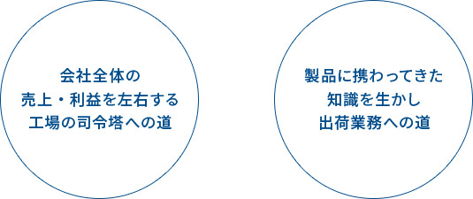 材料の手配、作業員の配置、生産工程の管理など、広い視野を持ってものづくりの現場に携わることができ、生産現場の司令塔となって活躍できます。管理するのは製品についての予定や進捗だけではありません。製造と営業、この両者に向けての調整も行います。つまり、ものが作られて市場に出るまで(納期通りに製作し指示された場所へ届けるまで)をトータルで管理していく仕事になります。1つの仕事を終えるたびに着実に成長を実感できます。