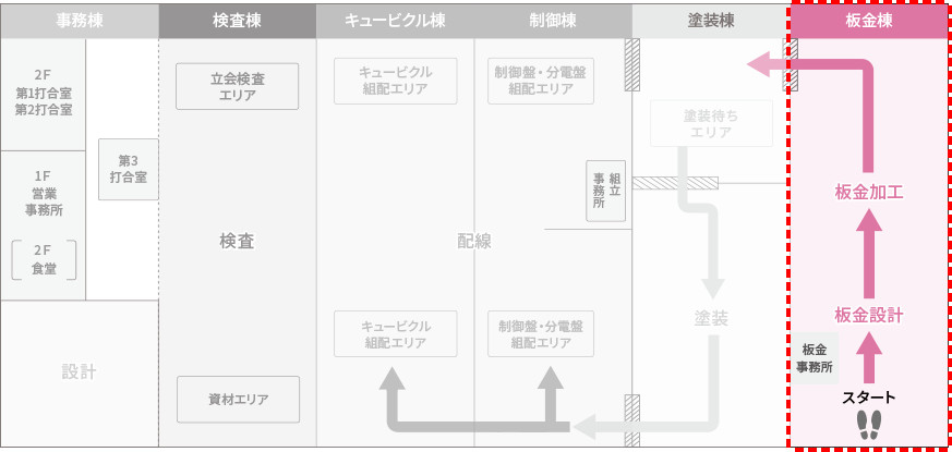 「板金設計」担当が考えた設計図をもとに鋼板を切り出し、