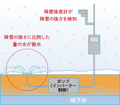 降雪量に応じて地下水をくみ上げ散水量を制御